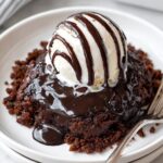 A rich and fudgy chocolate cobbler featuring a chocolate batter topped with a gooey cocoa and brown sugar topping, baked until the cake rises to the top and a luscious pudding forms at the bottom. Perfect served warm with ice cream.