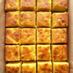 - Release and Cut: Run a knife around the edges to loosen. Lift the bars out using the parchment paper overhang and transfer to a cutting board. Cut into 24 pieces.